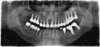 pose de 6 implants au niveau des prémolaires et molaires, sous jacent à un comblement osseux sous-sinusien