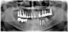 extraction de l’incisive centrale, canine, 1ère prémolaire et des 2 molaire supérieures gauches et pose de 5 implants avec piliers et bridge provisoires